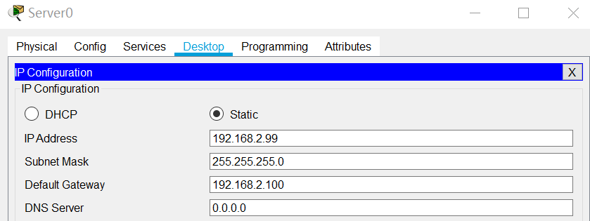 192.168.2.99,默认网关为192.168.2.100