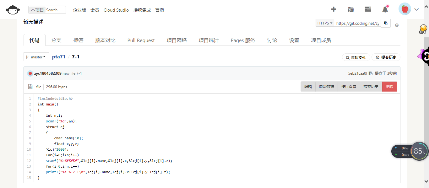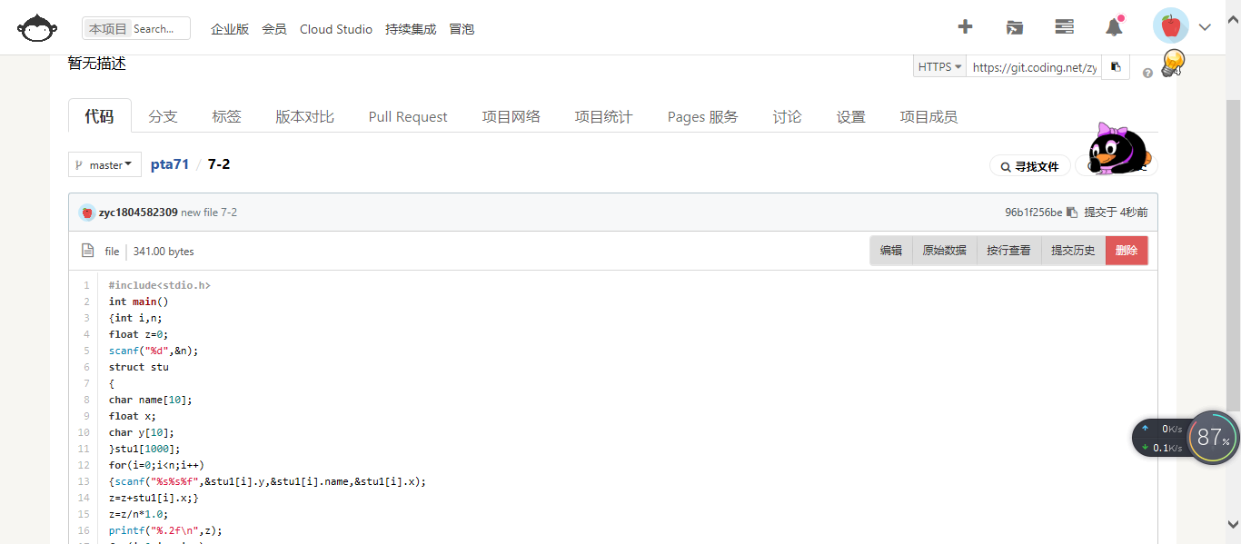 git地址:https://git.coding.net/zyc1804582309/pta71.git
