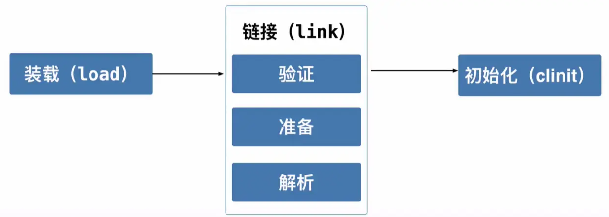 .class字节码读入内存,生成Class对象)、 - 链接(1.验证字节码合法性、2.为静态变量分配内存并赋默认值,如