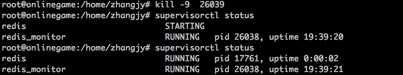 配置了上诉配置后,就可通过supervisorctl看到配置的两条内容,一条是redis监控项,另外一条则是事件监听器redis_monitor: