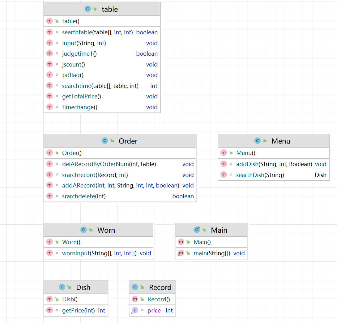 在Menu类中还有Dish类的对象,并且该菜品对象还是用数组来表示更让我头疼,我认为还是我对Java本质面向对象性了解的不深入,无法灵活地理清楚各个类之间的关系,每个类中属性、方法存在的意义。