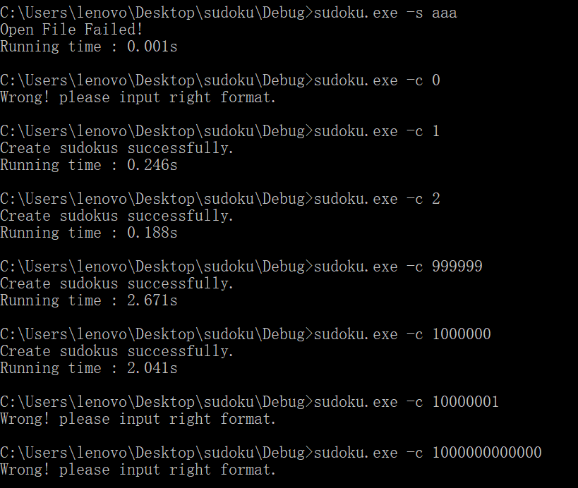 | sudoku.exe -c 1000001 | 否 |