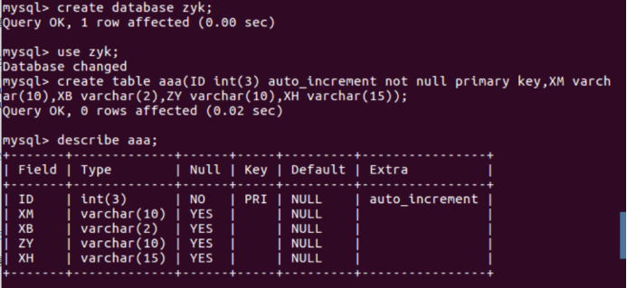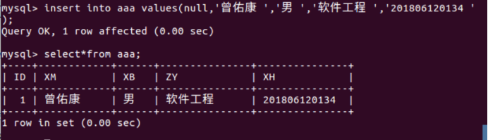 (2)创建姓名缩写数据库,创建学生数据表,输入自己的学号姓名信息
