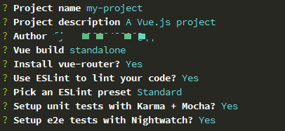 $ vue init webpack my-project (#my-project为自定义项目名)