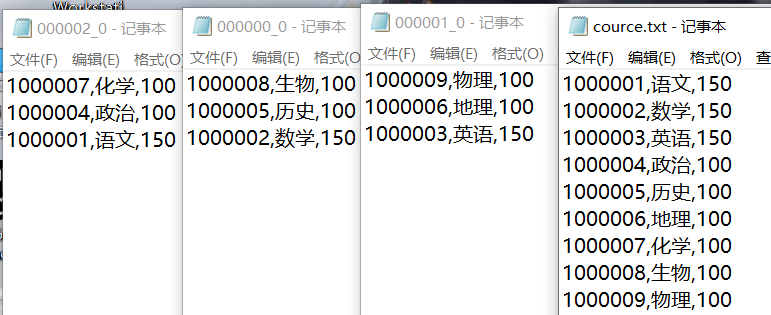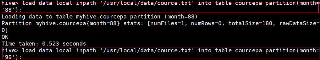上传文件:hadoop dfs -put /usr/local/data/cource.txt /datacource/month=8888