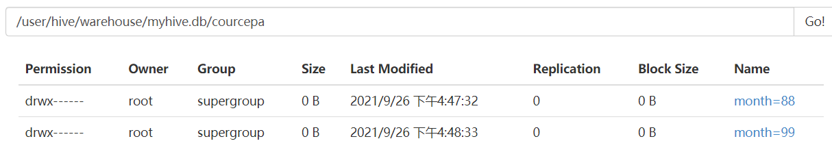 创建文件目录:hadoop dfs -mkdir -p /datacource/month=8888