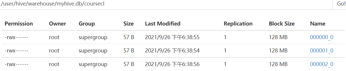 进行表的修复:msck repair table courcepa1