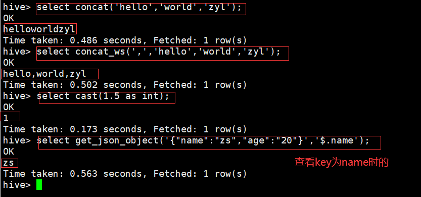 hive> select get_json_object('{"name":"zs","age":"20"}','$.name'); //josn字符串的解析