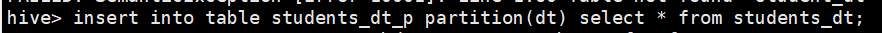 分区insert操作,这时的partition(dt)是按位置进行查找,找最后一个,只是刚好select * from students_dt的最后一个字段也是dt