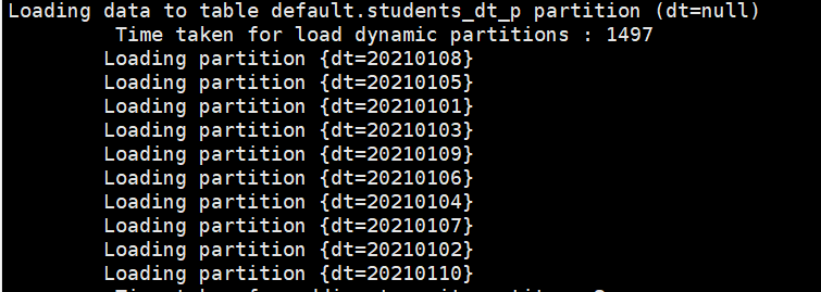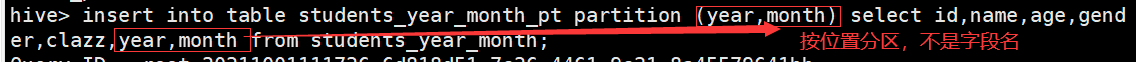 insert into table students_dt_p partition(dt) select id,name,age,gender,dt,age from students_dt;