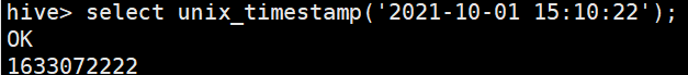 hive> select unix_timestamp('2021-10-01 15:10:22');