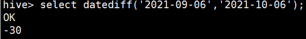 hive> select datediff('2021-09-06','2021-10-06');