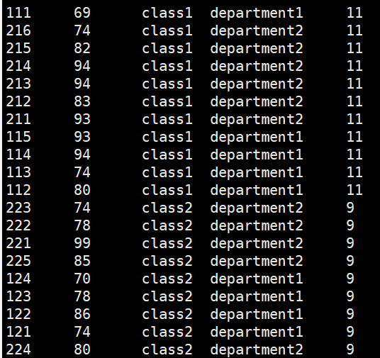 select *,count(*) over (partition by clazz) from new_score;