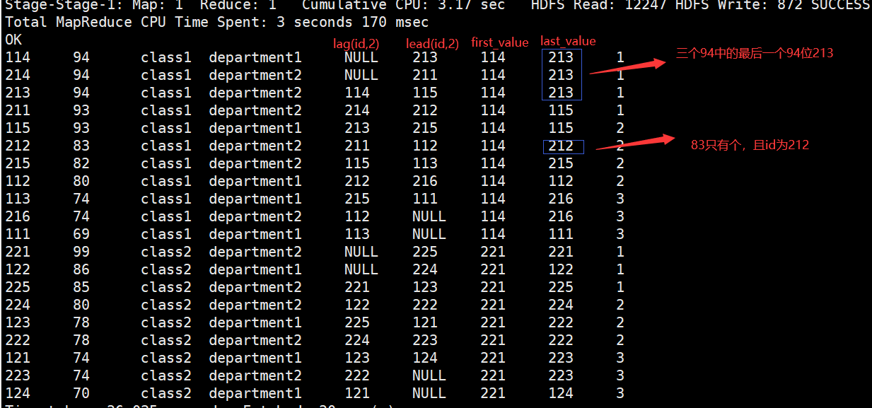 > ,lag(id,2) over (partition by clazz order by score desc) as lag_num