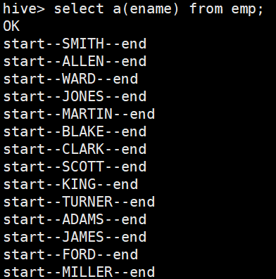 查询HQL语句:hive> select a(ename) from emp;