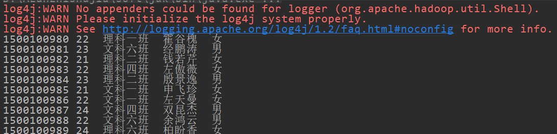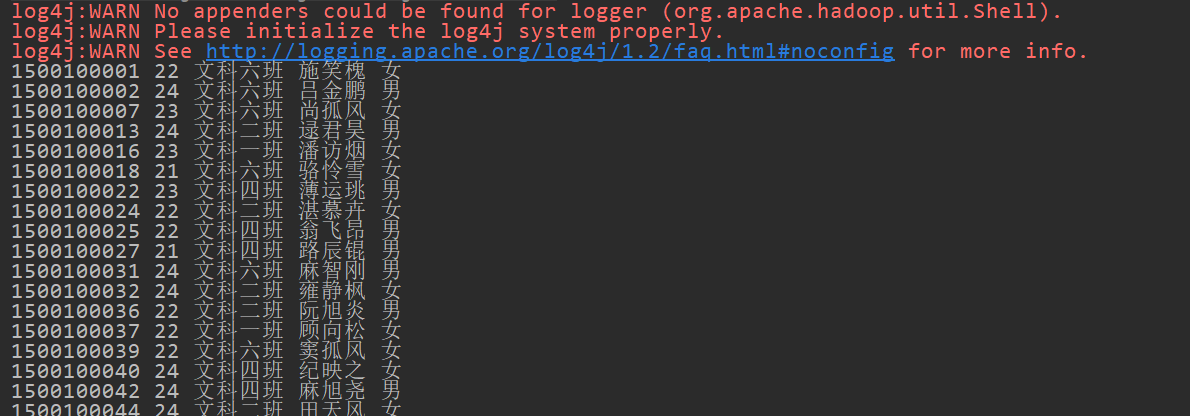@Test //过滤age>=23,sex=男,ROWKEY以150010010开头所有学生数据 public void Filter6() throws IOException { SingleColumnValueFilter age = new SingleColumnValueFilter( "info".getBytes(), "age".getBytes(), CompareFilter.CompareOp.GREATER_OR_EQUAL, "23".getBytes() ); SingleColumnValueFilter sex = new SingleColumnValueFilter( "info".getBytes(), "sex".getBytes(), CompareFilter.CompareOp.EQUAL, "男".getBytes() ); PrefixFilter prefixFilter = new PrefixFilter("150010010".getBytes()); //创建一个filter数组存储多个过滤器 FilterList filterList = new FilterList(); filterList.addFilter(age); filterList.addFilter(sex); filterList.addFilter(prefixFilter); printScannerWithFilter(filterList); }