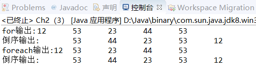 System.out.print("foreach输出:");