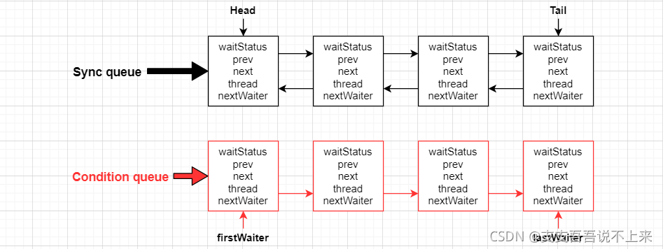 aqs内部维护了一个CLH队列来管理锁,线程首先会尝试获取锁,如果失败,就将线程以及等待状态的信息包装成一个Node节点,加入到Sync Queue同步队列中,接着会不断循环尝试获取锁,它的条件是,当前节点为head的直接后记才会尝试,如果失败就会阻塞自己,直到自己被唤醒,而当持有锁的线程释放锁的时候,会唤醒队列中的后继线程。