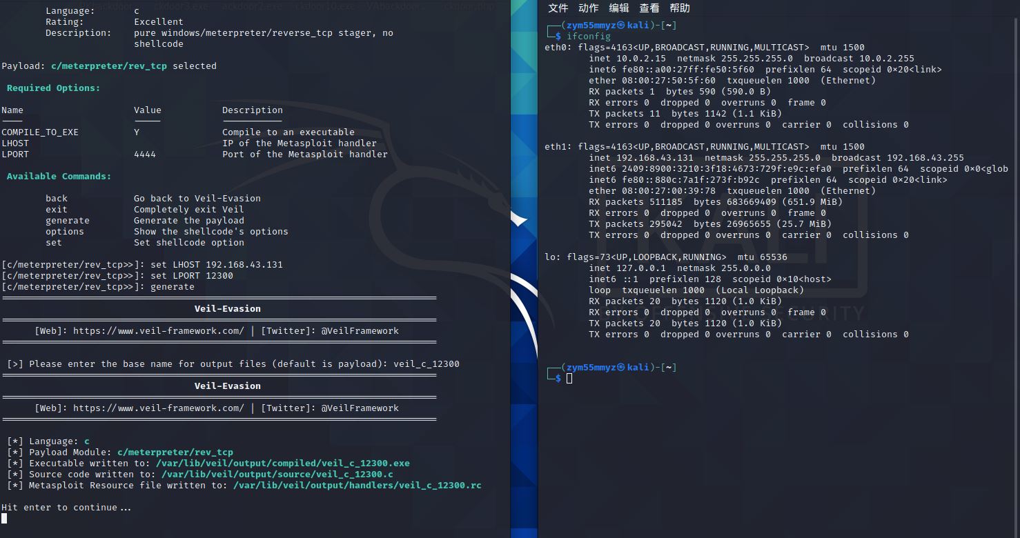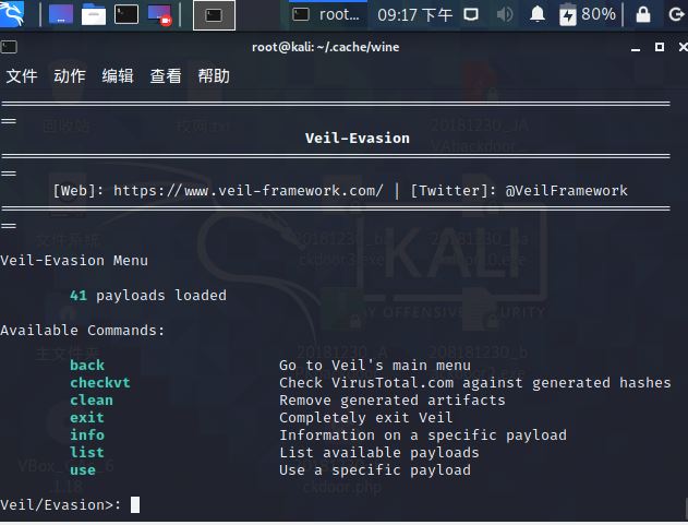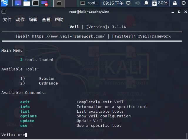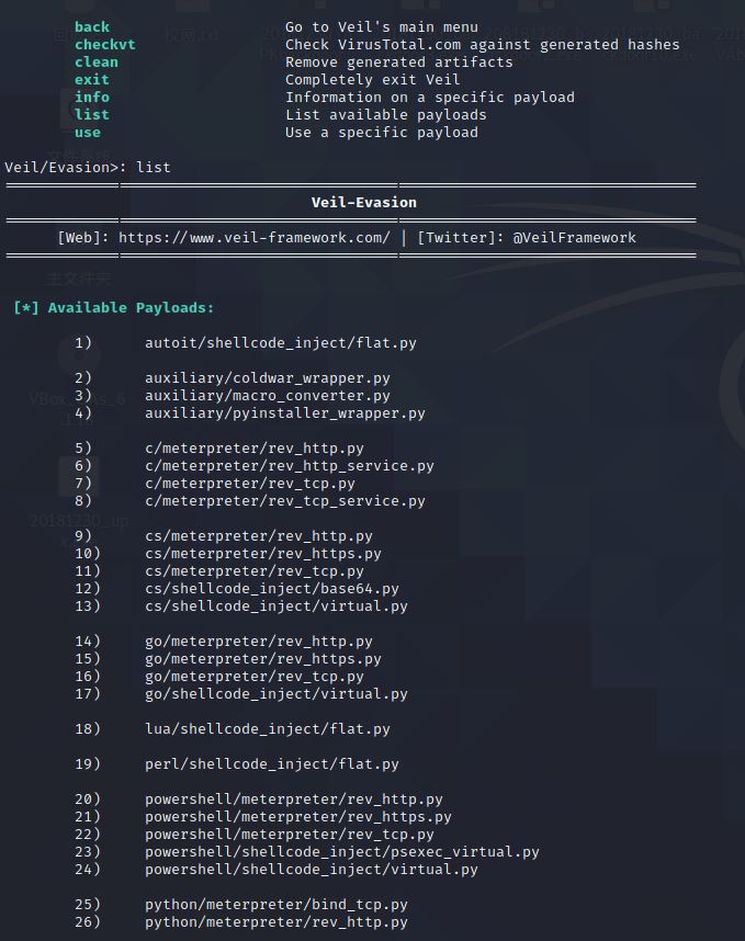 - Veil-Evasion是一个免杀平台,与Metasploit有点类似,在Kalil软件库中有,但默认没装。