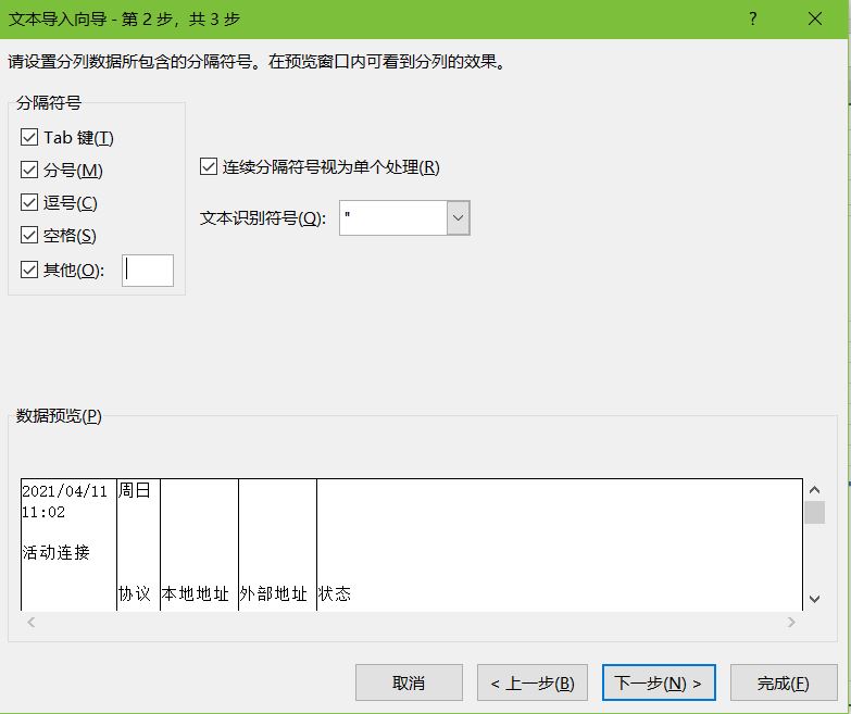 (1)使用如计划任务,每隔一分钟记录自己的电脑有哪些程序在联网,连接的外部IP是哪里。运行一段时间并分析该文件,综述一下分析结果。目标就是找出所有连网的程序,连了哪里,大约干了什么(不抓包的情况下只能猜),你觉得它这么干合适不。如果想进一步分析的,可以有针对性的抓包。