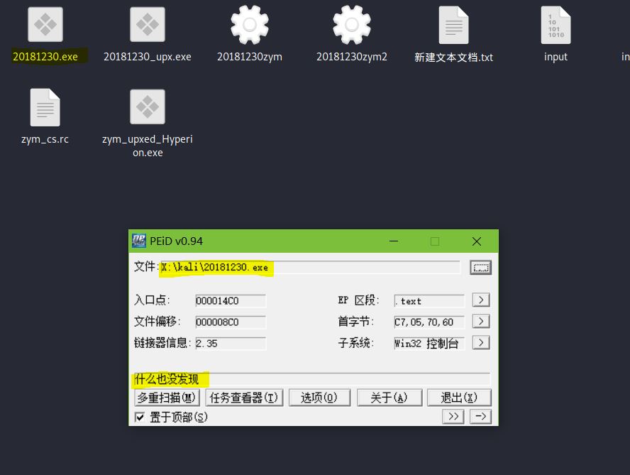 - 直接利用静态分析工具如:PEID、ExeinfoPE等工具看看有没壳在保护