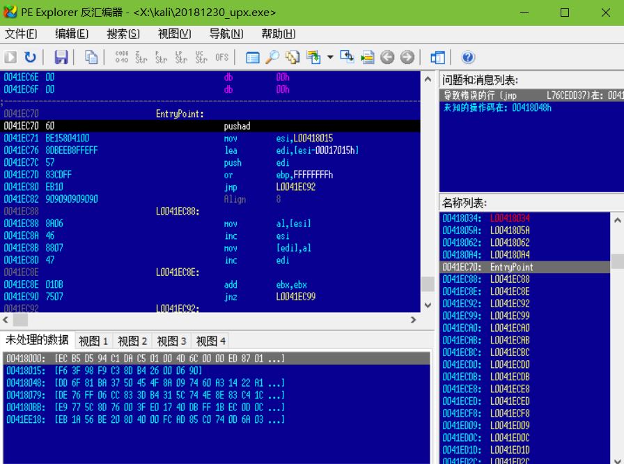 - 加壳脱壳(UPX、VMUnPacker工具等)