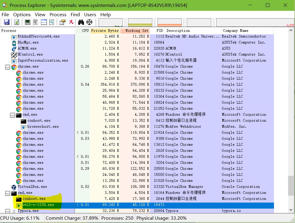 运行后门程序进行回连时,我们可以在Process Explorer工具中查看到其记录。