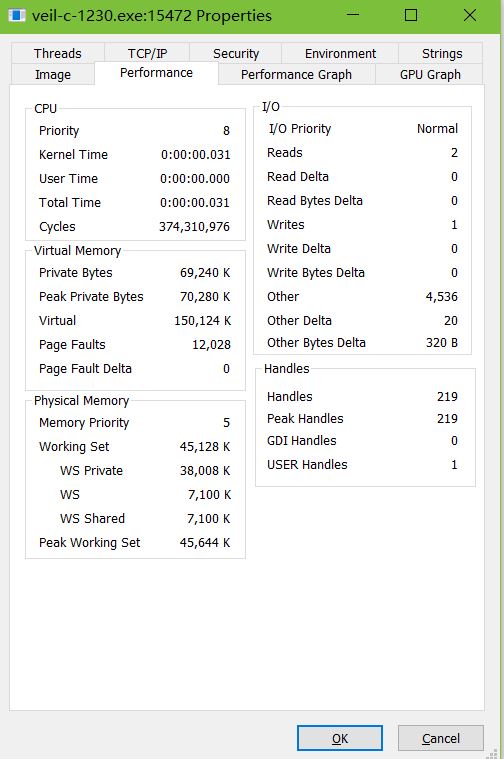 也可以详细查看该进程使用的CPU,虚拟内存空间、物理内存空间、I/O等。