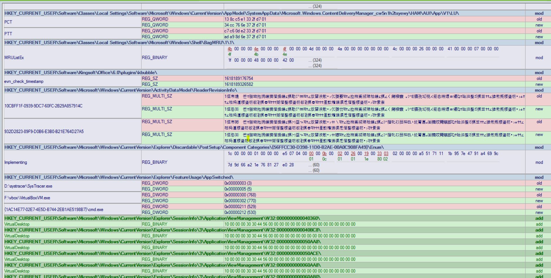 - 然后快摄拍照,对比进程运行前后有没有可疑端口、注册表或可疑的大量变化