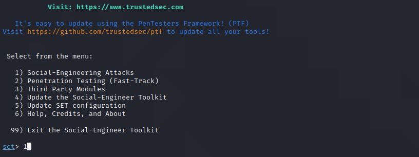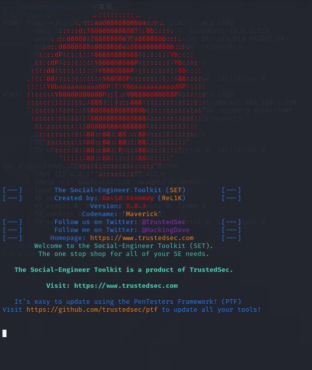 输入sudo setoolkit打开SET工具: