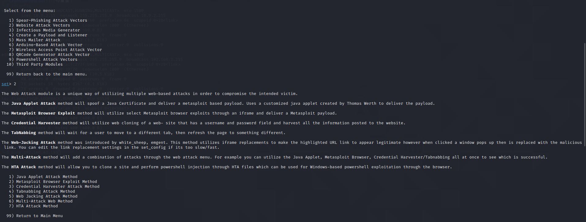 4、选择2:Website Attack Vectors即钓鱼网站攻击向量