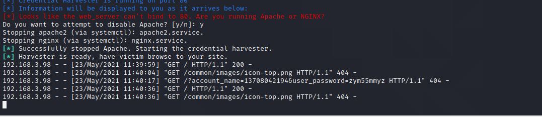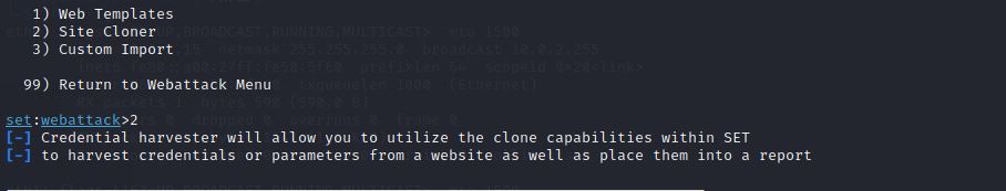 (1)简单应用SET工具建立冒名网站
