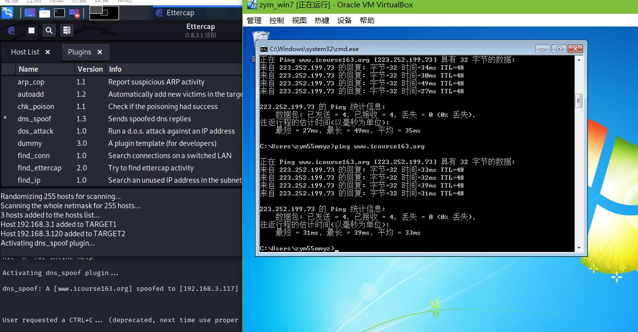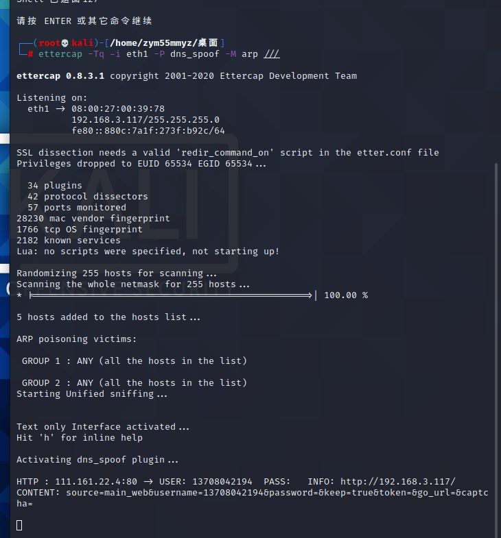 任务三:结合应用两种技术,用DNS spoof引导特定访问到冒名网站。