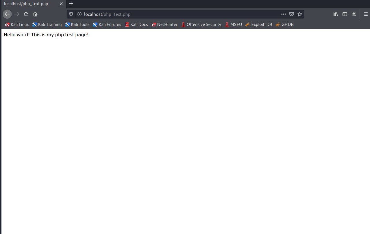 2、 在浏览器网址栏中输入localhost:80/php_text.php,可看到文件的内容: