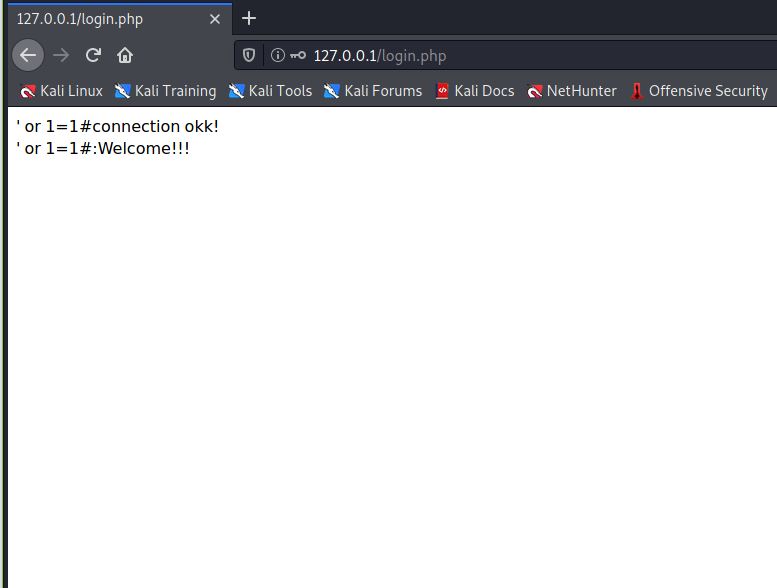 - 在用户名输入框输入' or 1=1#,密码任意输入,可登陆成功: