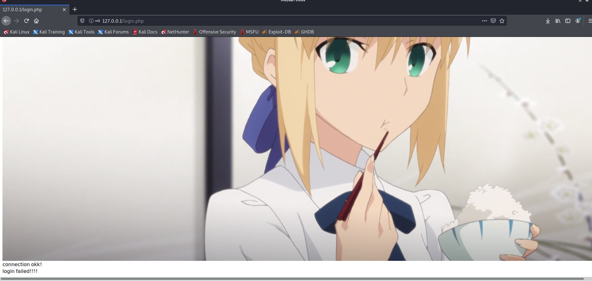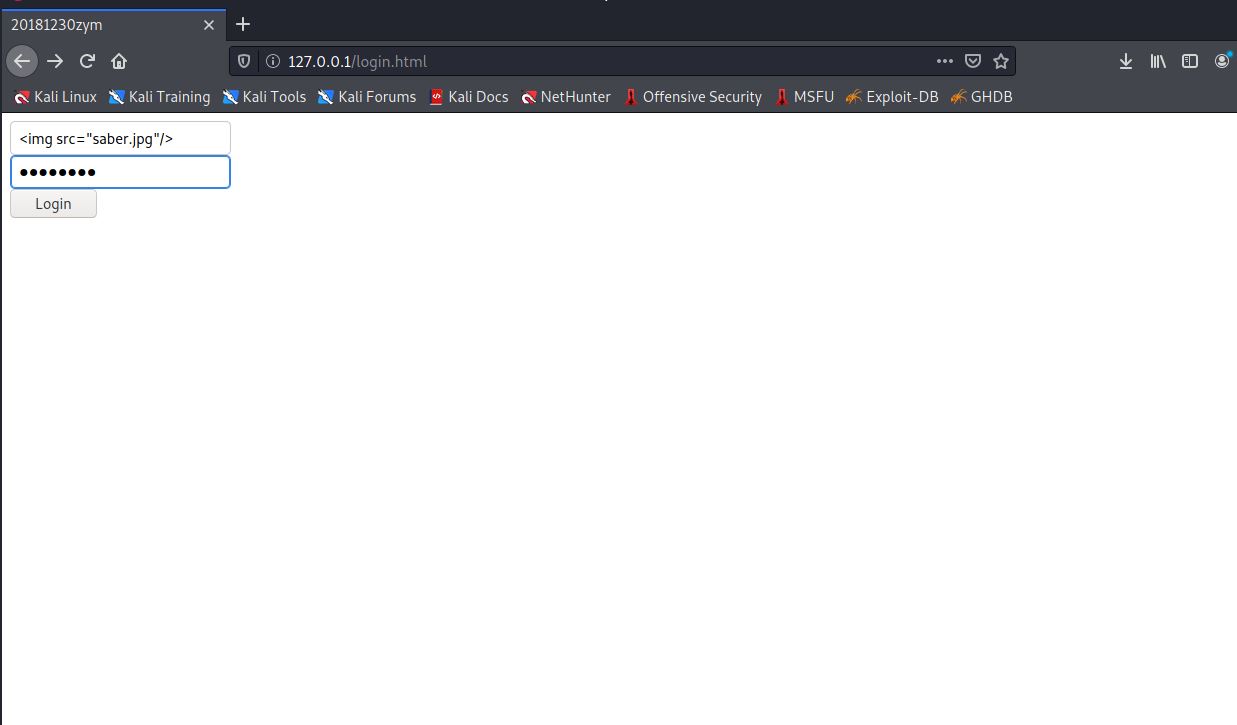 - 将一张图片放在/var/www/html目录下,在用户名输入框输入<img src="名字.格式" />,密码随意,即可读取图片:
