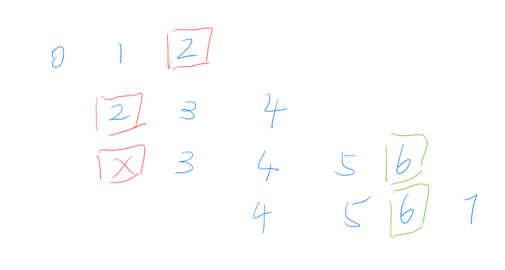 比如:红色的第一个数的比较,用第一个的末尾数和第二个区间比较,在区间内,那么和第三个区间比较,不在区间内,那么就用第三个的末尾数和下面的区间继续比较,得出是2和6这两个数。(输出是个数2)