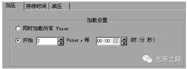 可以在“加压”选项卡中进行设置:如下图所示,将设置更改为:“每 30 秒启动 2 个 Vuser”