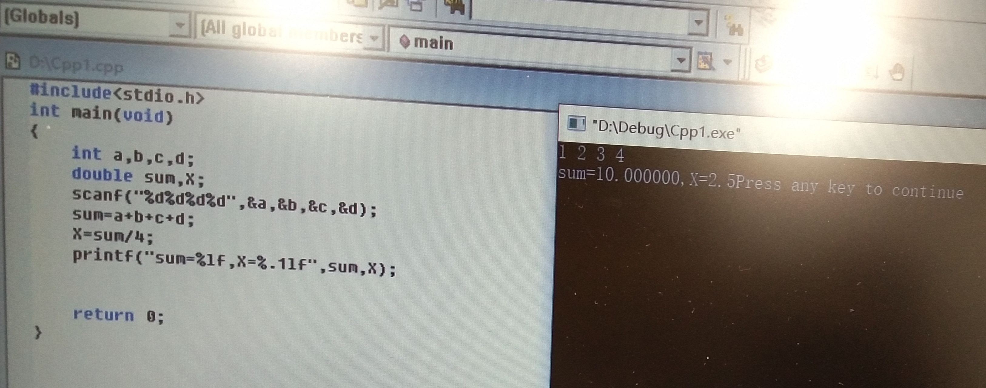 心得体会:在本次编程中比之前熟练了一些,还有就是对double的使用不是很明确,还有就是在printf输出的时候在括号里面把格式提示符和变量都用双引号扩了起来,下次要更加注意。
