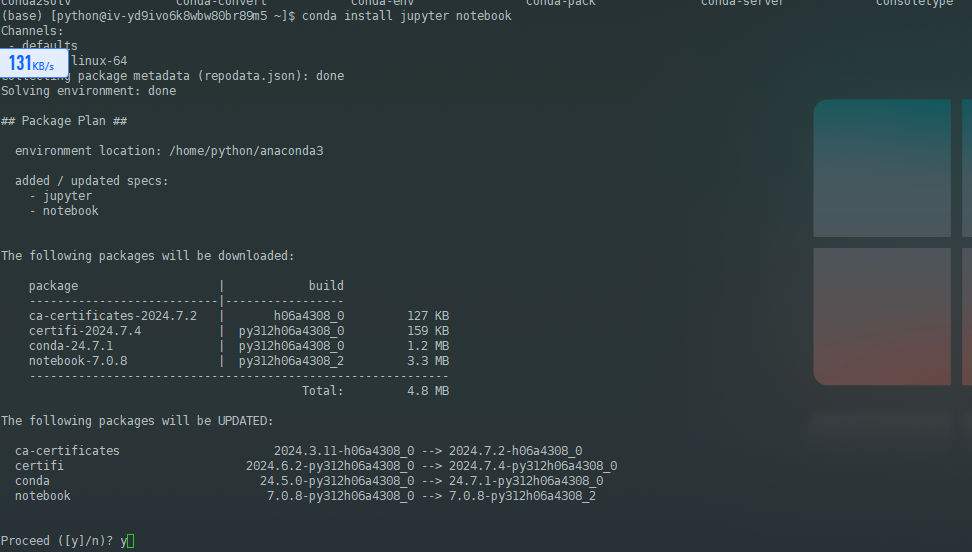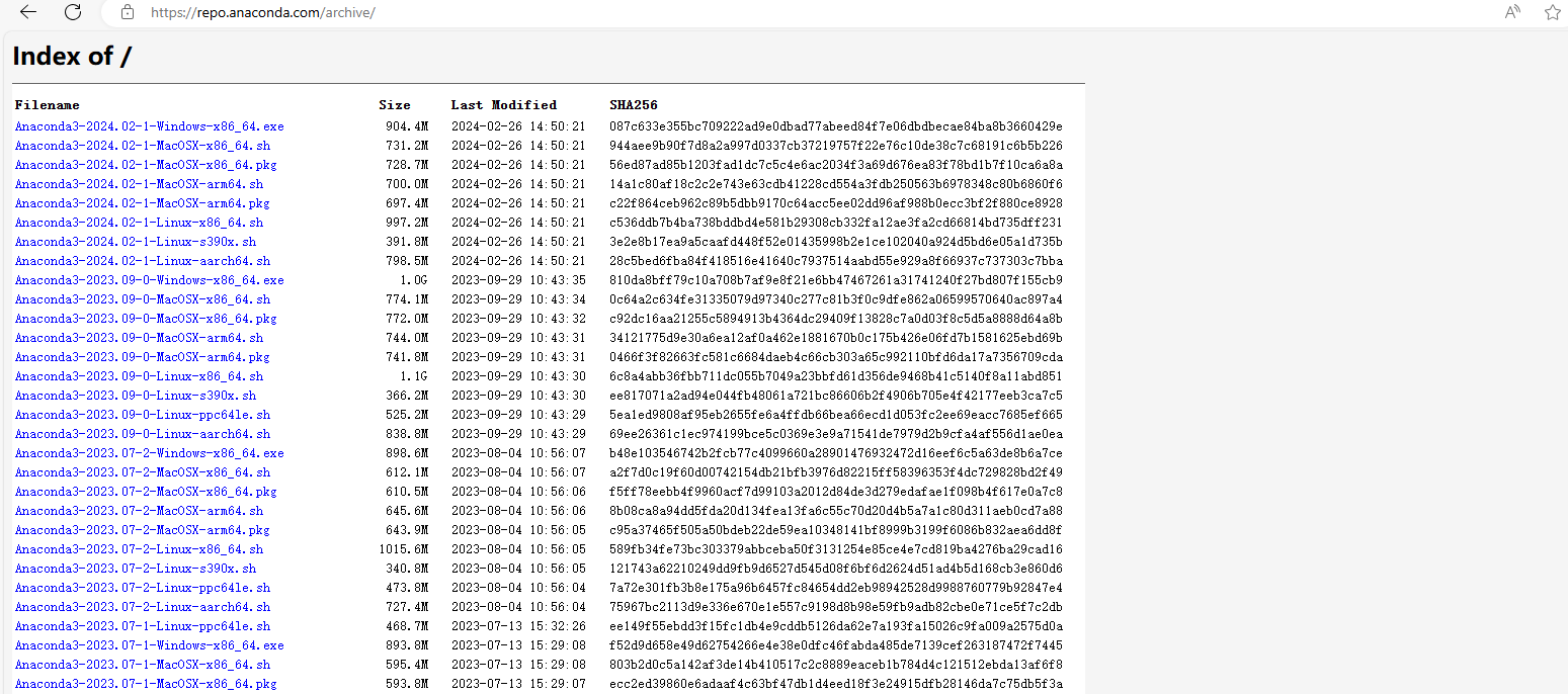 选择合适的版本,我这里选了Anaconda3-2024.02-1-Linux-x86_64.sh,wget https://repo.anaconda.com/archive/Anaconda3-2024.02-1-Linux-x86_64.sh