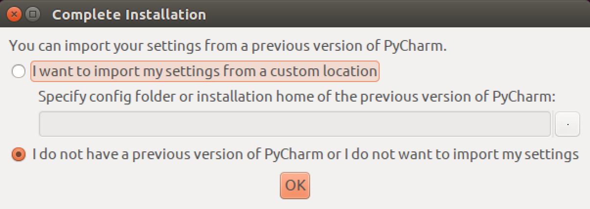 PyCharm时,会首先提示用户是否导入 之前的配置信息 - 如果是第一次使用,直接点 OK 按钮