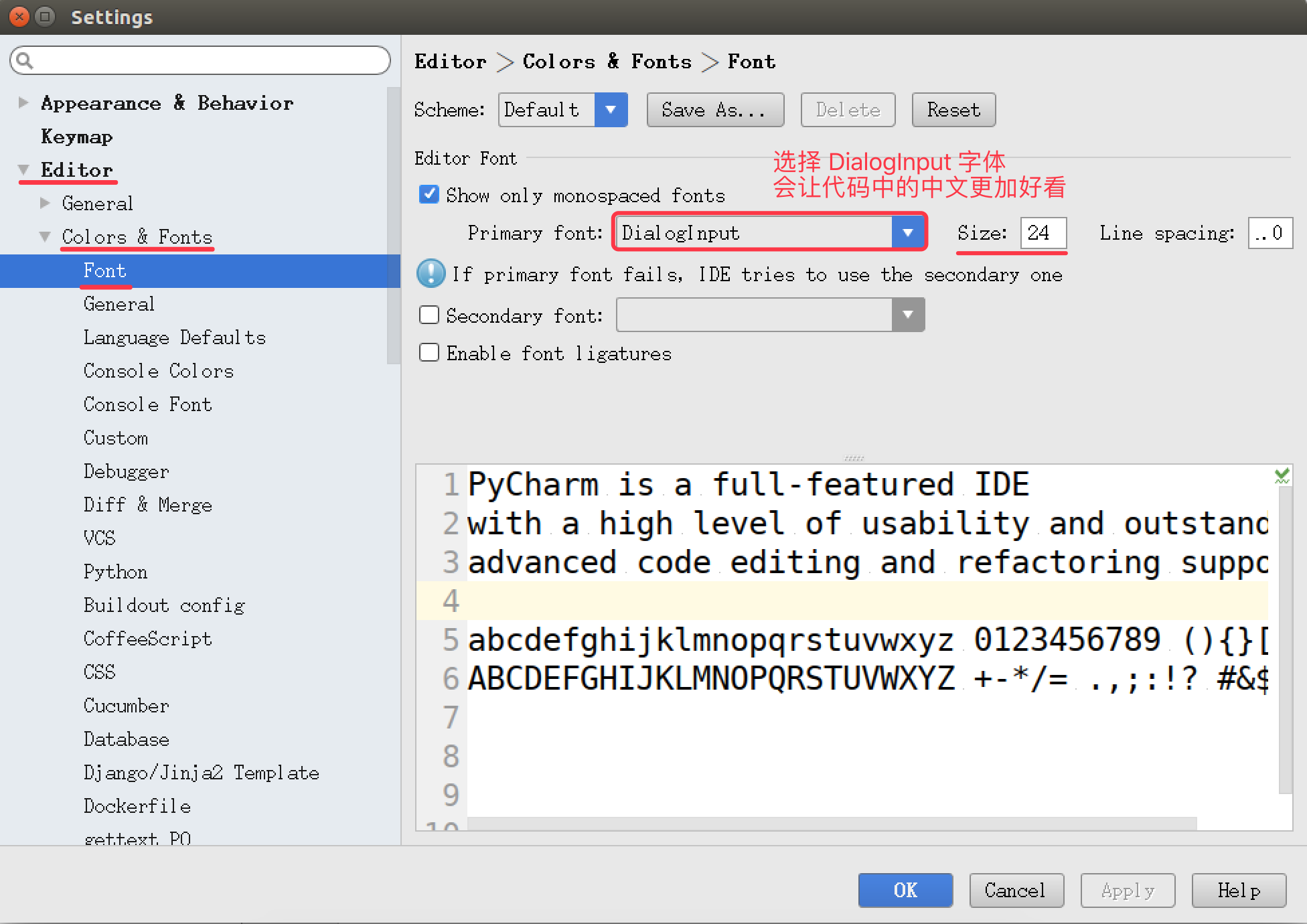 Editor colors and fonts选择 编辑器的配色方案![]()