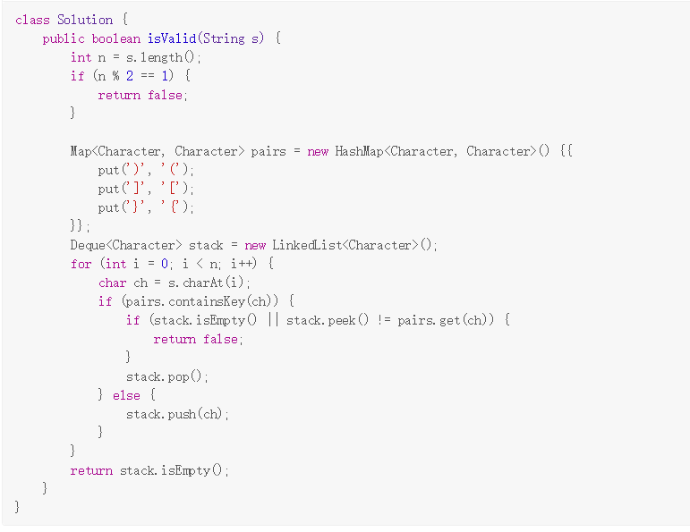 - 左括号必须用相同类型的右括号闭合。