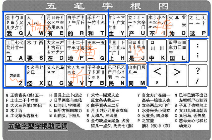 键名汉字打四下,基本字根请照搬;