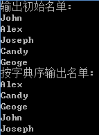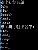 这题和上题不大一样,上面一题是对数字进行排序,这题是对字符串数组进行排序,所以还要定义新数组并进行赋值操作才能保证结果正确,要不然你仅仅是对首字母进行了排序而不是整个字符串(不信你们去试试看,反正我信了/滑稽)。