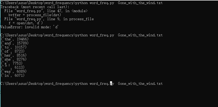 这个程序主要让我们学习了对数据进行怎样的处理,如何进行词频统计。