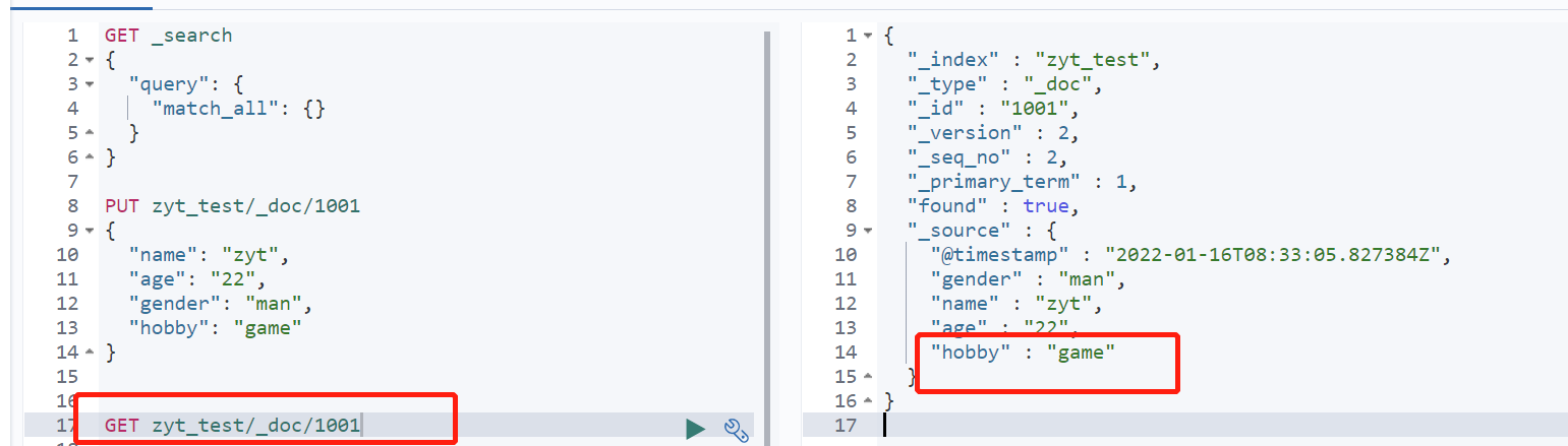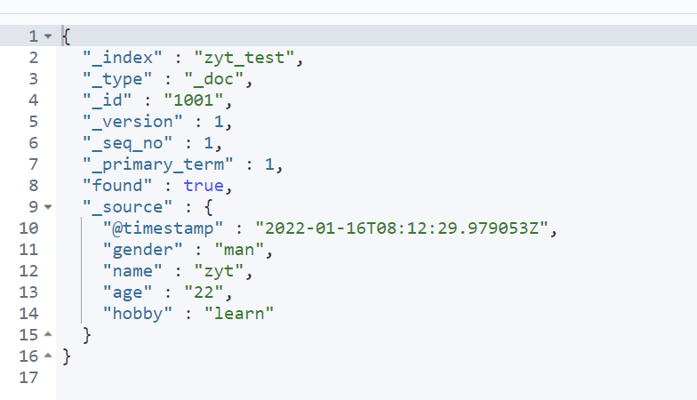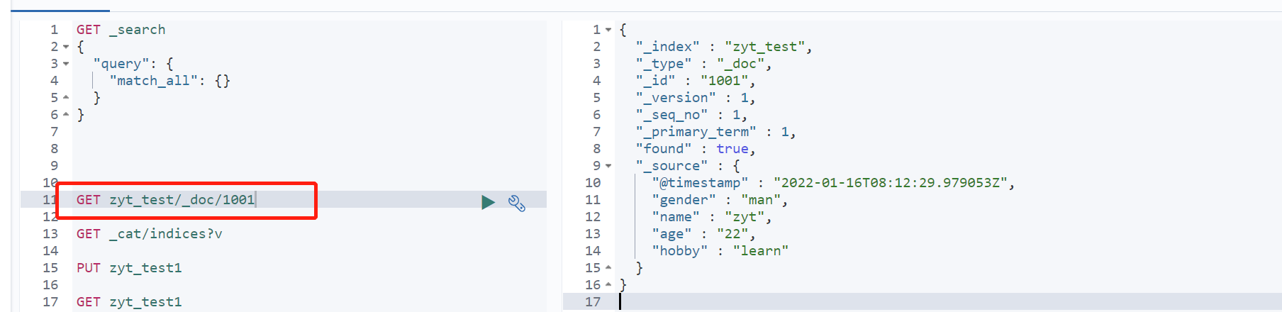 POST zyt_test/_doc/1001 //_doc后的1001为数据创建的ID